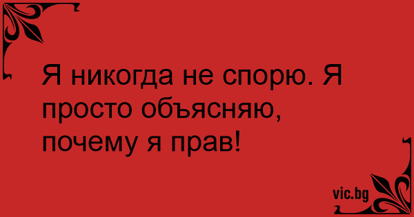 Я никогда не спорю. Я просто объясняю, почему я прав!