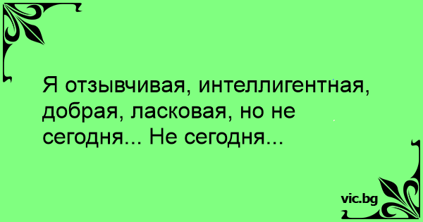Я отзывчивая, интеллигентная, добрая, ласковая, но не сегодня... Не сегодня...