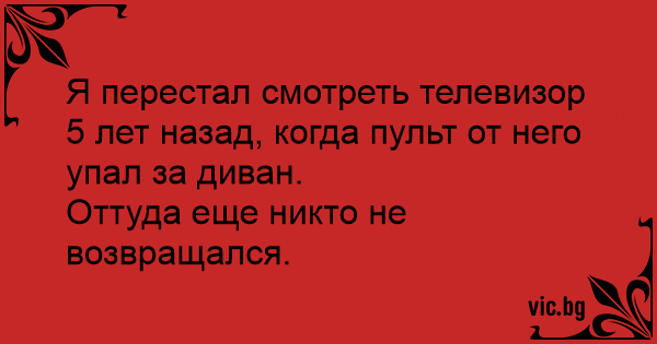 Я перестал смотреть телевизор 5 лет назад, когда пульт от него упал за диван.
