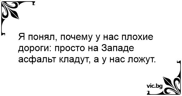 Я понял, почему у нас плохие дороги: просто на Западе асфальт кладут, а у нас ложут.