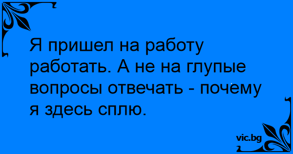 Я пришел на работу работать. А не на глупые вопросы отвечать - почему я здесь сплю.
