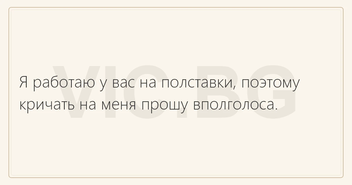 Я работаю у вас на полставки, поэтому кричать на меня прошу вполголоса.