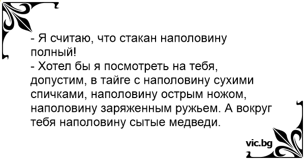- Я считаю, что стакан наполовину полный!