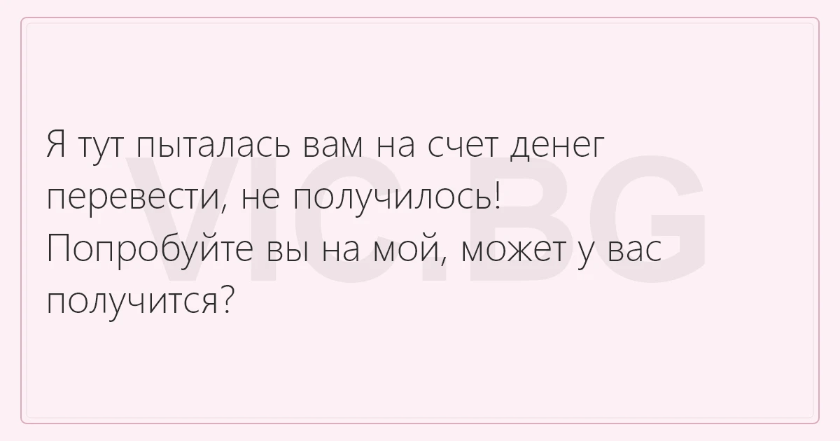 Я тут пыталась вам на счет денег перевести, не получилось!