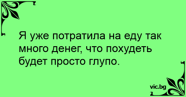 Я уже потратила на еду так много денег, что похудеть будет просто глупо.