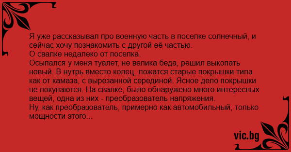 Осыпался у меня туалет, не велика беда, решил выкопать новый. В нутрь вместо колец, ложатся старые покрышки типа как от камаза, с вырезанной серединой. Ясное дело покрышки не покупаются. На свалке, было обнаружено много интересных вещей, одна из них - преобразователь напряжения.