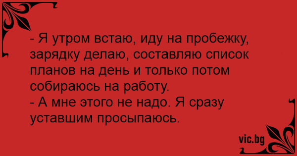 - А мне этого не надо. Я сразу уставшим просыпаюсь.