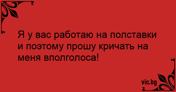 Я у вас работаю на полставки и поэтому прошу кричать на меня вполголоса!
