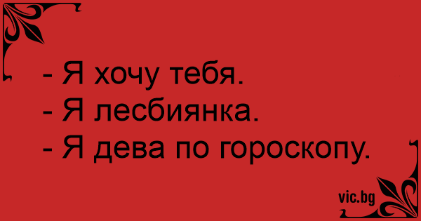 - Я хочу тебя.<br />- Я лесбиянка.<br />- Я дева по гороскопу.