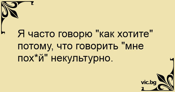 Я часто говорю "как хотите" потому, что говорить "мне похуй" некультурно.<br />
