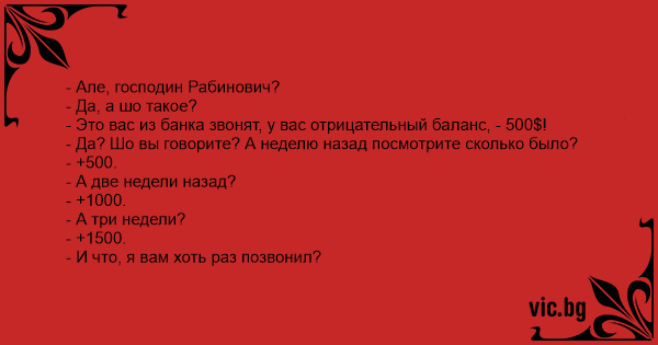 - Это вас из банка звонят, у вас отрицательный баланс, - 500$!