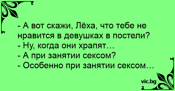 - А вот скажи, Лёха, что тебе не нравится в девушках в постели?