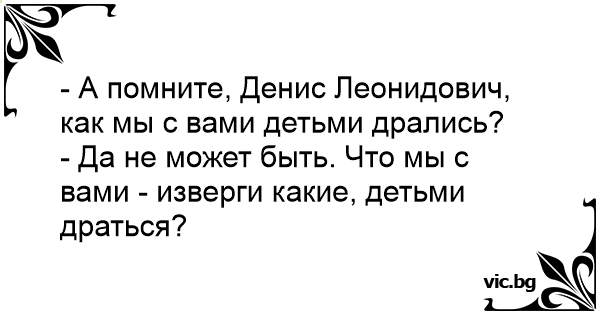 - А помните, Денис Леонидович, как мы с вами детьми дрались?