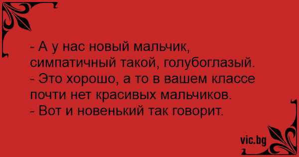 - Это хорошо, а то в вашем классе почти нет красивых мальчиков.