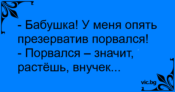 - Бабушка! У меня опять пpeзepbatиb порвался!