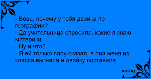 - Вова, почему у тебя двойка по географии?