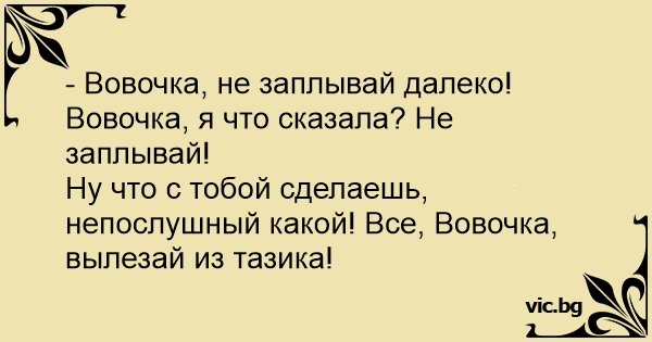 - Вовочка, не заплывай далеко! Вовочка, я что сказала? Не заплывай!