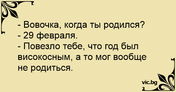 - Повезло тебе, что год был високосным, a то мог вообще не родиться.