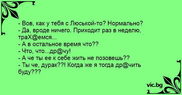 - Вов, как у тебя с Люськой-то? Нормально?