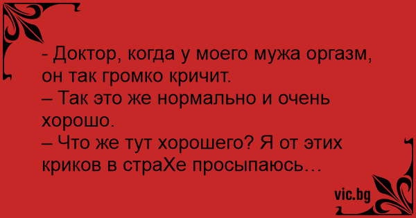 - Доктор, когда у моего мужа оргазм, он так громко кричит.