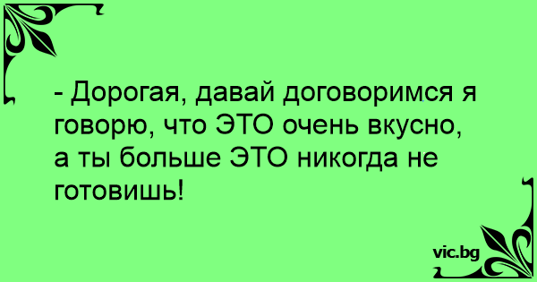 - Дорогая, давай договоримся я говорю, что ЭТО очень вкусно, а ты больше ЭТО никогда не готовишь!