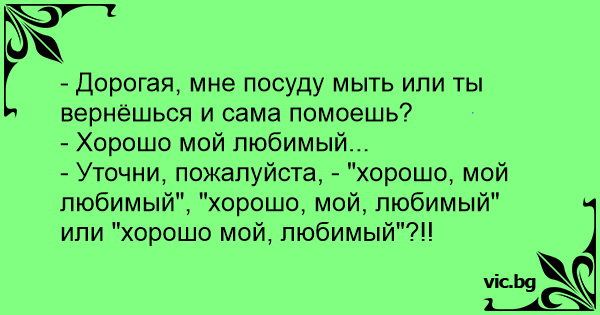 - Дорогая, мне посуду мыть или ты вернёшься и сама помоешь?