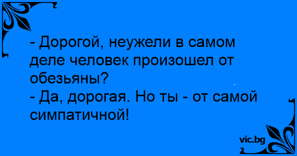 - Дорогой, неужели в самом деле человек произошел от обезьяны?