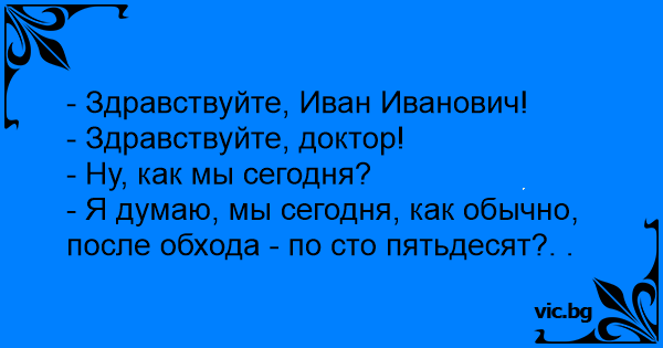 - Я думаю, мы сегодня, как обычно, после обхода - по сто пятьдесят?. .