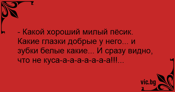 - Какой хороший милый пёсик. Какие глазки добрые у него... и зубки белые какие... И сразу видно, что не куса-а-а-а-а-а-а-а!!!...