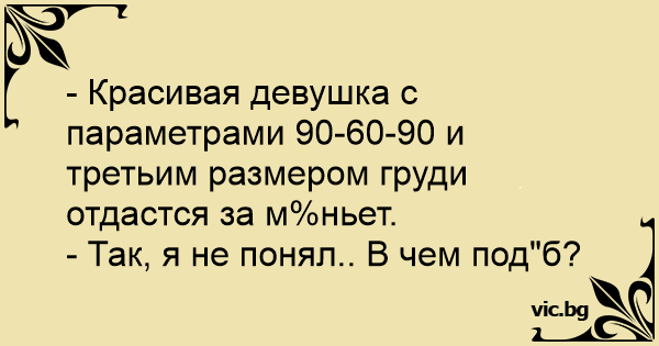 - Красивая девушка с параметрами 90-60-90 и третьим размером груди отдастся за м%ньет.