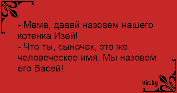 - Что ты, сыночек, это же человеческое имя. Мы назовем его Васей!
