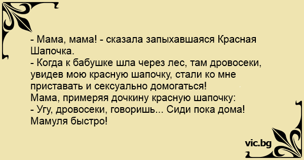 - Мама, мама! - сказала запыхавшаяся Красная Шапочка.