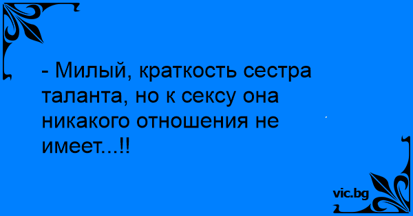 - Милый, краткость сестра таланта, но к сексу она никакого отношения не имеет...!!