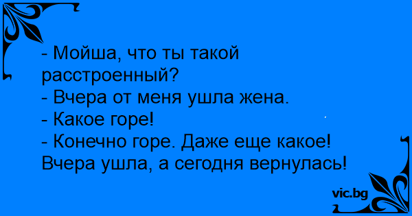 - Конечно горе. Даже еще какое! Вчера ушла, а сегодня вернулась!