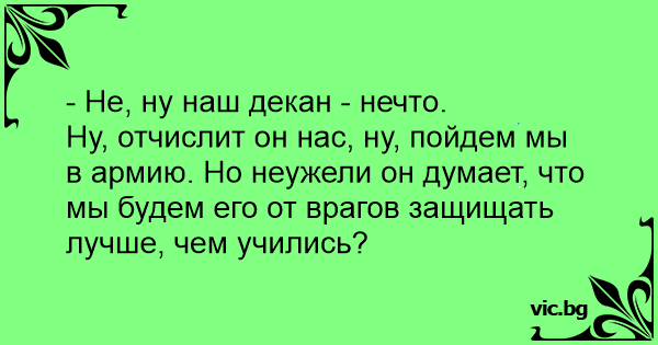 Ну, отчислит он нас, ну, пойдем мы в армию. Но неужели он думает, что мы будем его от врагов защищать лучше, чем учились?