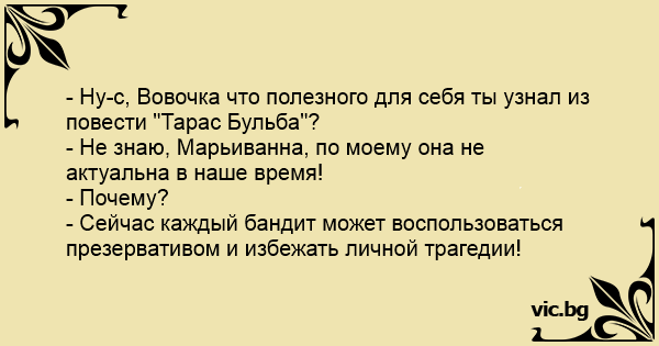 - Ну-с, Вовочка что полезного для себя ты узнал из повести "Тарас Бульба"?