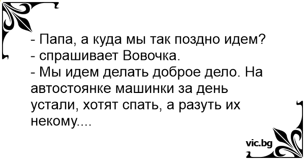 - Папа, а куда мы так поздно идем? - спрашивает Вовочка.