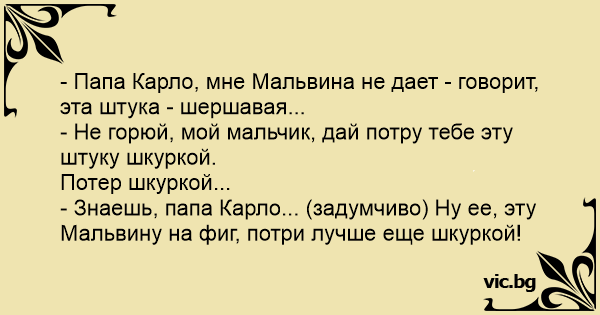 - Папа Карло, мне Мальвина не дает - говорит, эта штука - шершавая...