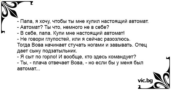 - Папа, я хочу, чтобы ты мне купил настоящий автомат.