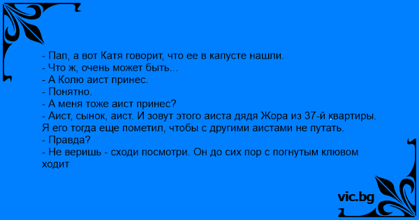 - Пап, а вот Катя говорит, что ее в капусте нашли.