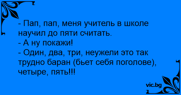 - Пап, пап, меня учитель в школе научил до пяти считать.