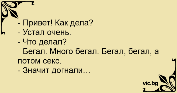 - Бегал. Много бегал. Бегал, бегал, а потом cekc.