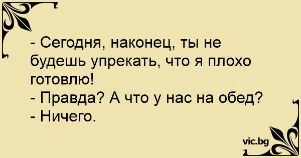 - Сегодня, наконец, ты не будешь упрекать, что я плохо готовлю!