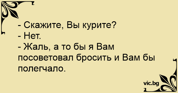 - Жаль, а то бы я Вам посоветовал бросить и Вам бы полегчало.