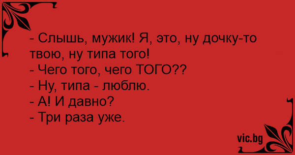 - Слышь, мужик! Я, это, ну дочку-то твою, ну типа того!