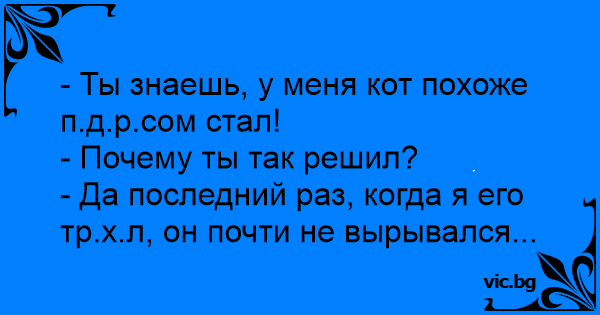 - Ты знаешь, у меня кот похоже п.д.р.сом стал!