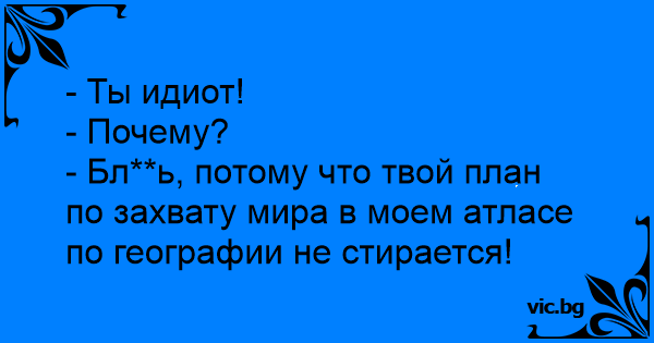 - Бл**ь, потому что твой план по захвату мира в моем атласе по географии не стирается!