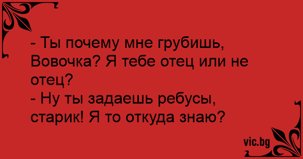 - Ты почему мне грубишь, Вовочка? Я тебе отец или не отец?