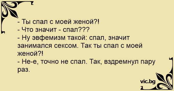 - Ну эвфемизм такой: спал, значит занимался сексом. Так ты спал с моей женой?!
