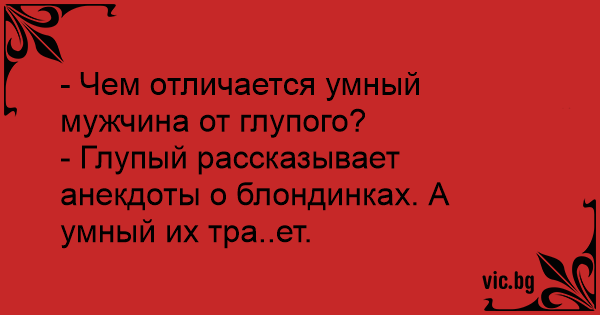 - Глупый рассказывает анекдоты о блондинках. А умный их тра..ет.